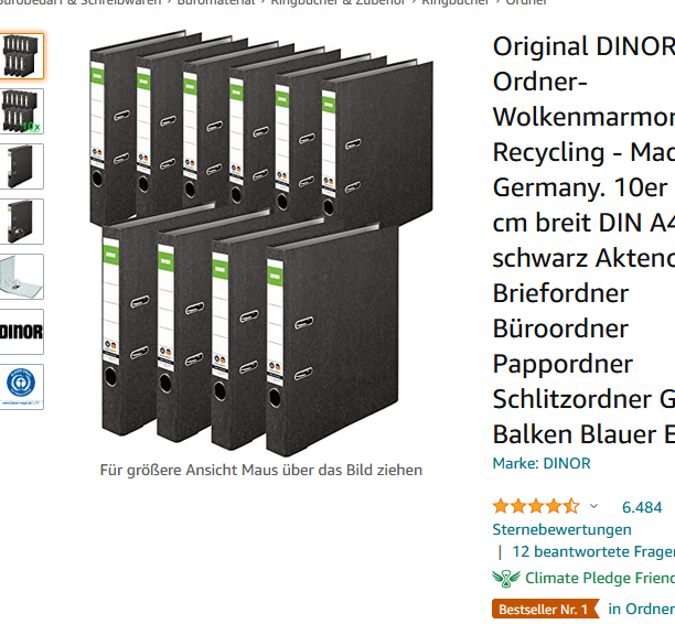 Da die schmalen Büroordner des 10er-Sets von DINOR billig und dennoch bestens sind, sind sie sogar der aktuelle Bestseller im Bereich Ordner bei Amazon.de.