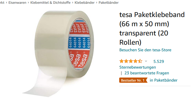 Auch ansonsten kann sich das tesa-Band sehen lassen. Schließlich ist es transparent, was oft hilfreich ist. Eine weitere nennenswerte Eigenschaft sollte das leise Abrollen sein.
